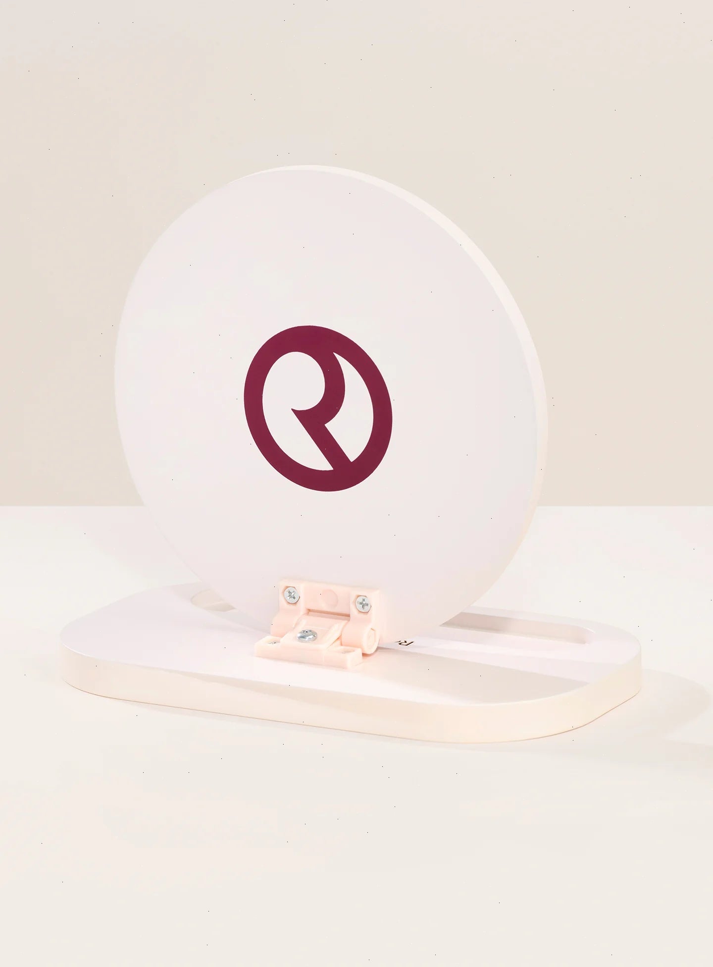 Convenient nook at the base of the mirror holds your fave Rare Beauty essentials.